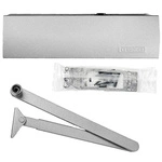 GEZE Set SILBER – Türschließer mit Gestänge und Montageplatte TS 2000 V BC Silber für einflügelige Türen mit einer Flügelbreite bis 1250 mm, mit Bolzen