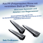 • Set-Inhalt: 6 Kanäle à 1 m, 6 verzinkte Roste, 4 Endkappen, 2 Abläufe