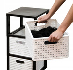 • Eleganter Turm mit Rattan-Optik, perfekt für Wohn-, Bade- oder Arbeitszimmer. 3 A4-Schubladen, pflegeleicht, 4 Lenkrollen. Maße: 375 x 325 x 712 mm. Gewicht: 2,83 kg.