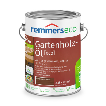 Remmers Gartenholz-Öl [eco] ist ein natürliches Schutzöl auf Basis nachwachsender Rohstoffe für Gartenholz. Es ist eine ökologische und langlebige Lösung für die Pflege und den Schutz von Gartenmöbeln, Pergolen, Zäunen und Terrassen.